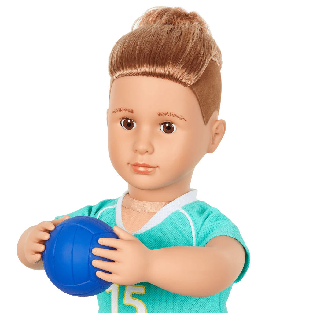 Pro your next brandishing contest with the Our Generation 18-inch kid doll Johnny! This volleyball star has dim earthy colored eyes that open and close, and his short light hair is styled in a very cool kid bun! Johnny is prepared to feature his abilities in the volleyball competition and can hardly wait to vie for the prize he can pivot and curve his arms and legs to serve, set, and spike!