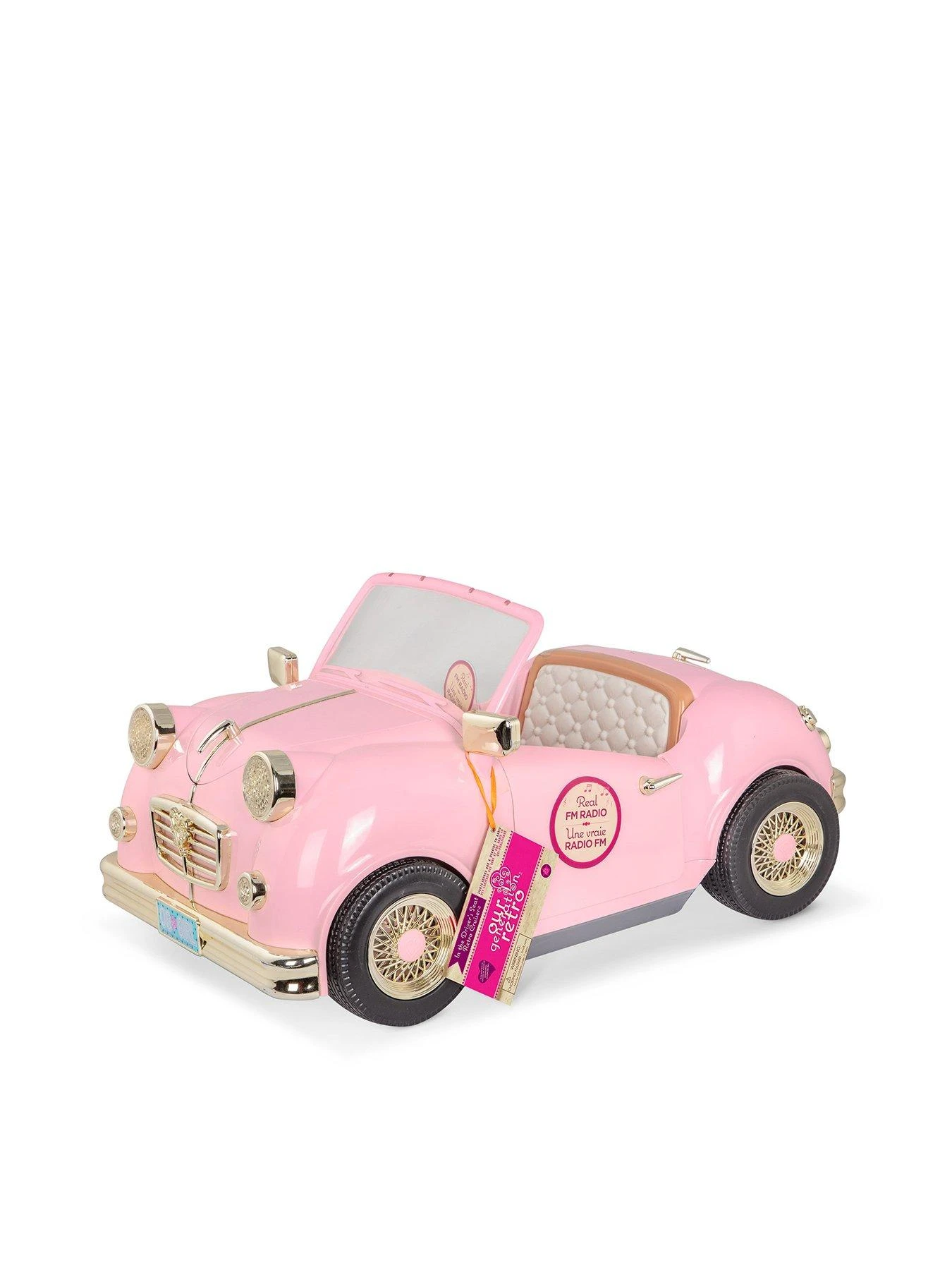 Your mini parent will love sending their dolls cruising by in this great convertible! 2 of their favourite dolls (up to 18-inches) can comfortably cruise around in this fun pink convertible. The “rumble seat” in the back is designed to hold their dolly baggage, picnic basket, or even a pet who’s coming along for the ride! Your little one can be the DJ, using the working FM radio to create a soundtrack – or choose from one of 4 pre-recorded songs!