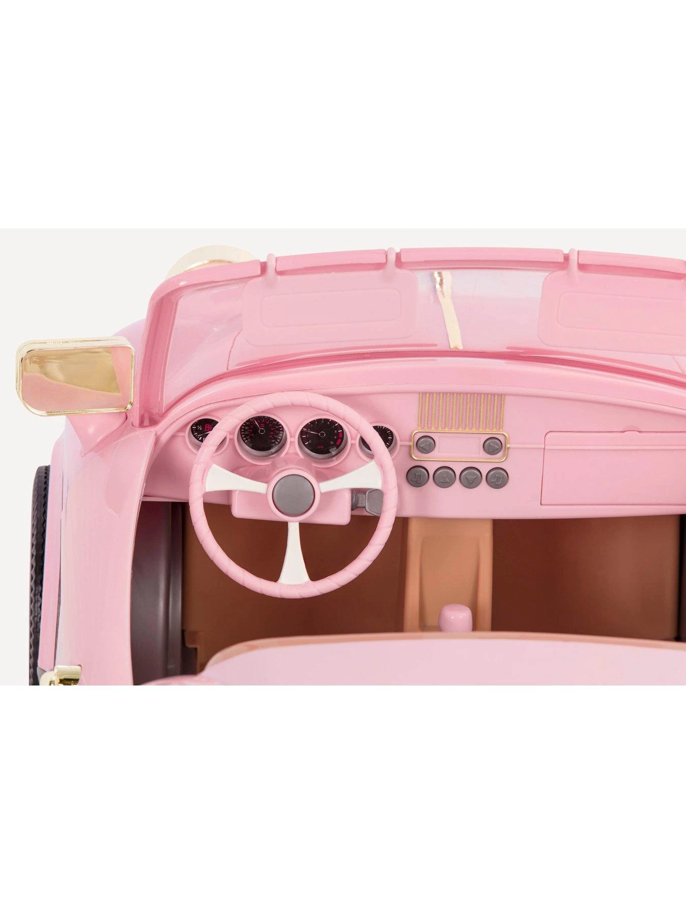 Working headlights, turn signals, and a light-up dashboard will help their dolls see where they’re going! Your little one can also check out the cool retro engine when they flip up the hood!