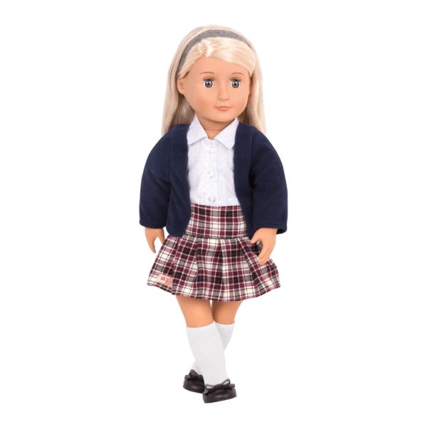 You’ll be learning the ABCs of fun with Our Generation Regular 18-inch School Doll – Emmeline, a beautiful doll who has long, straight blonde hair and bright green eyes.